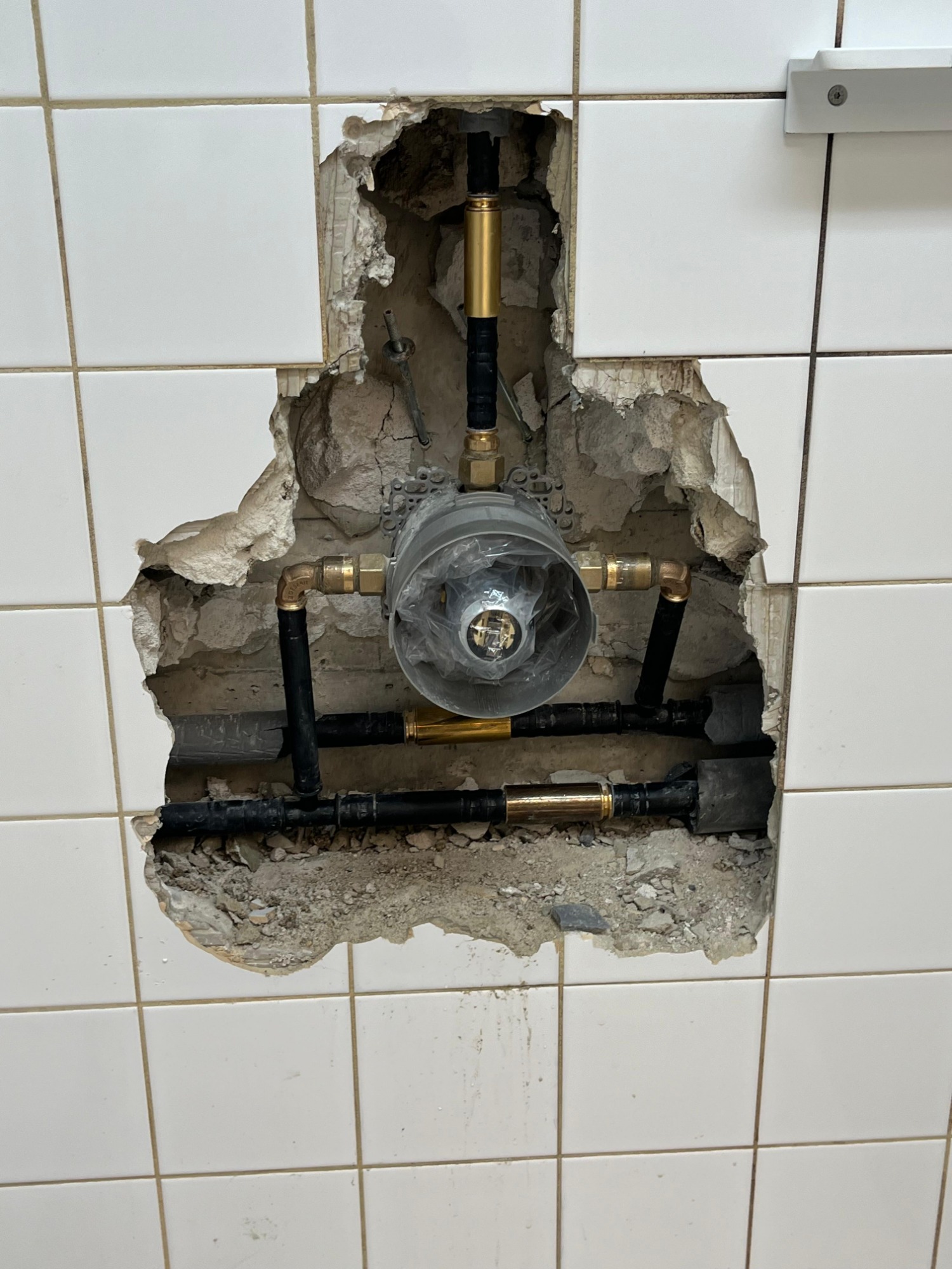 Sanitärinstallationen inkl. Fliesenarbeiten im öffentlichen Hallenbad.